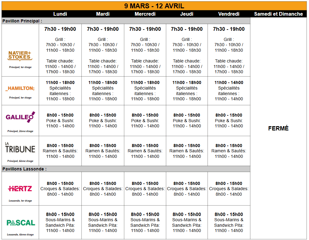 Située à l'un des étages les plus stratégiques du pavillon principal, où se trouvent la Coopoly, la Reprographie, le Registrariat et d'autres services, cette station propose une large sélection de gâteaux. Vous y trouverez également notre bar à pokés, où vous pourrez personnaliser votre bol selon vos préférences.