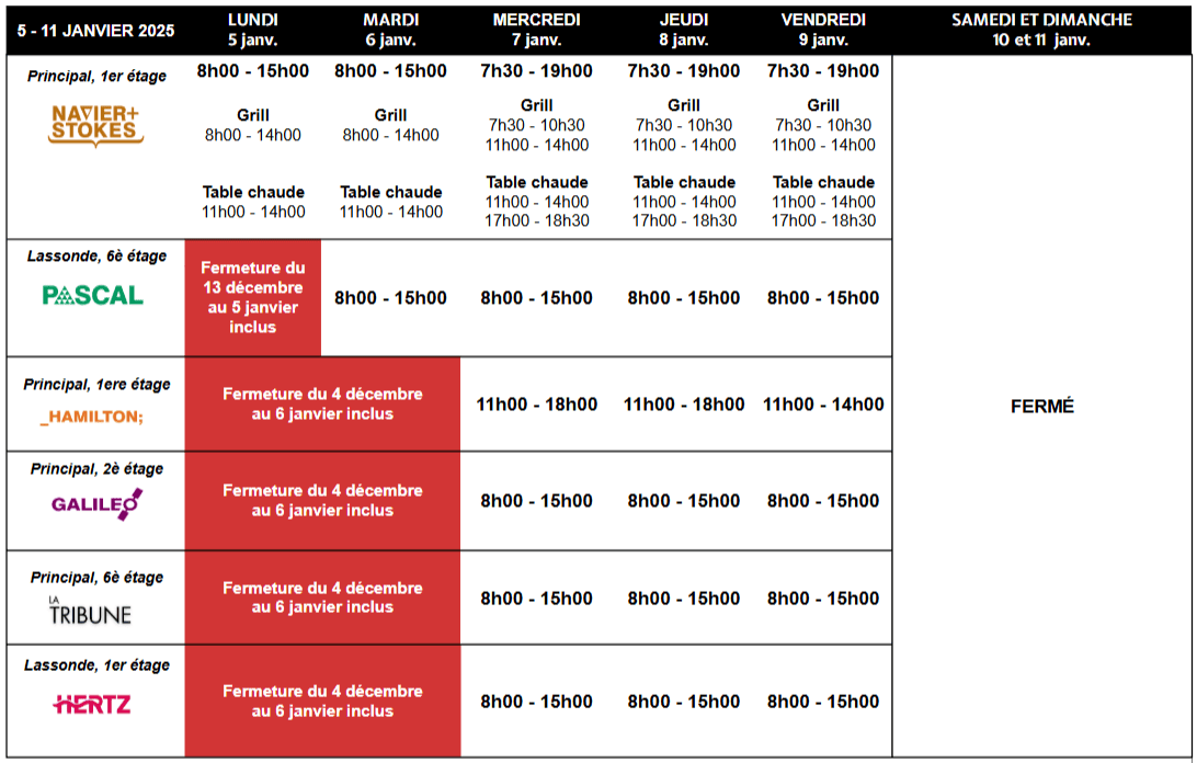 Cette station, connue sous le nom de cafétéria principale, propose tout au long de la journée une section grill, des petits déjeuners, un menu du jour incluant des options végétariennes, une variété de collations, ainsi que tout type de boissons chaudes et froides.