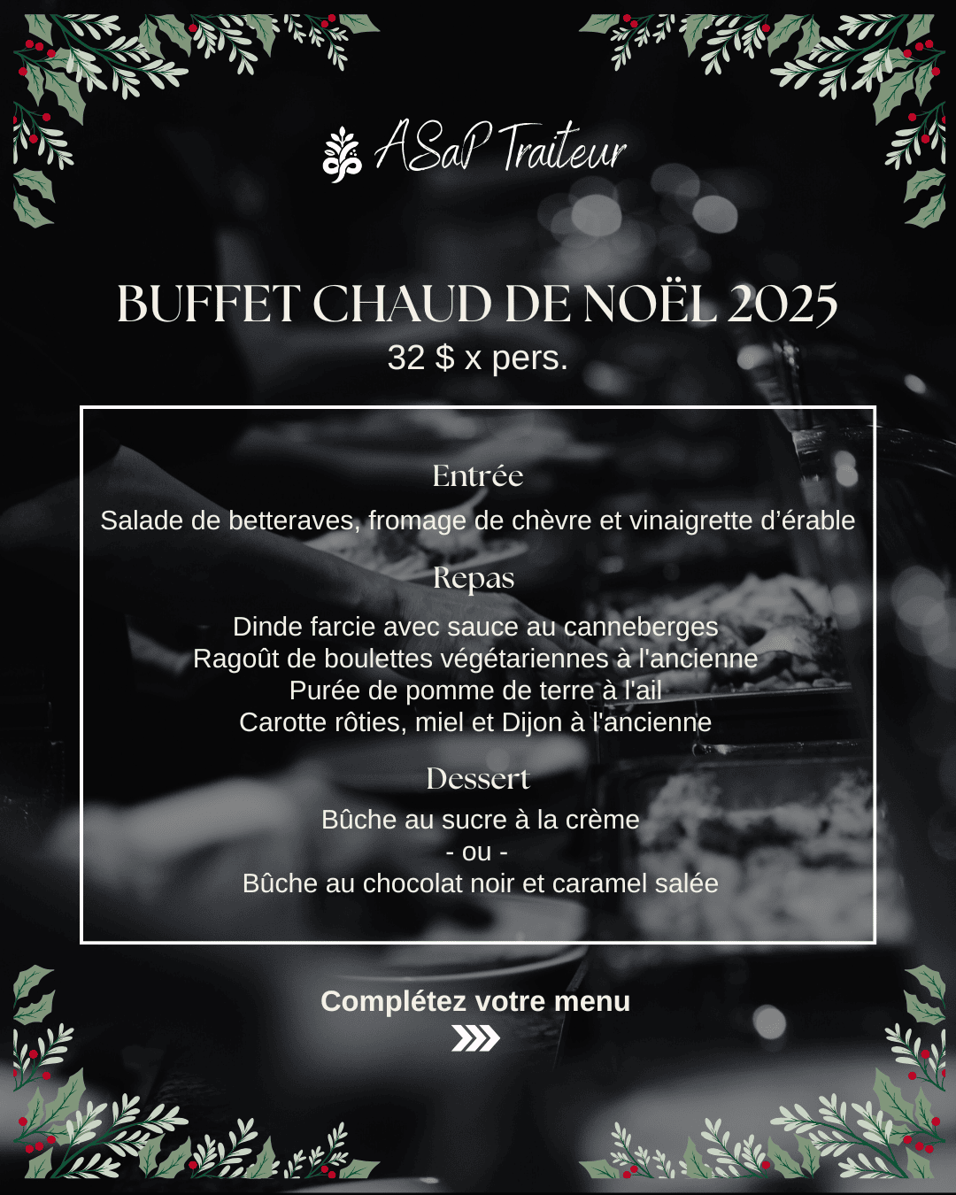 Buffet chaud de Noël disponible - ASaP Traiteur
