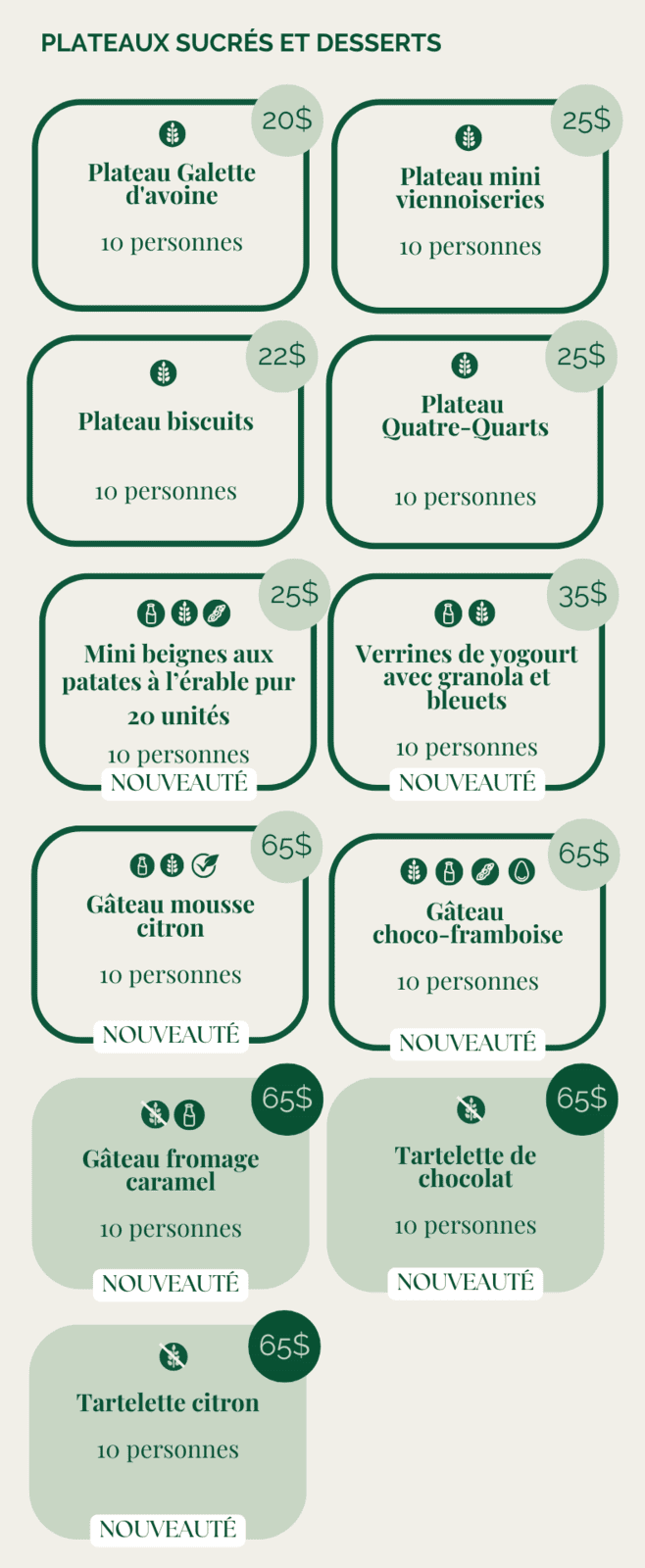 *Prix pour 10 personnes. Commande minimum pour 10 pers.