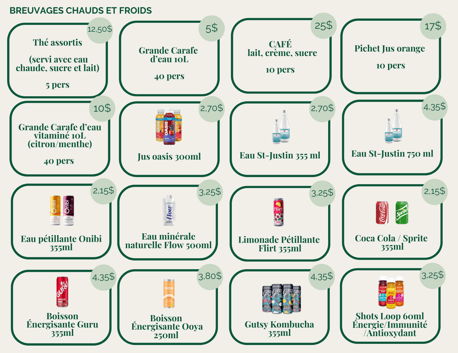 On vous propose différents forfaits préparés pour apporter l'énergie du café